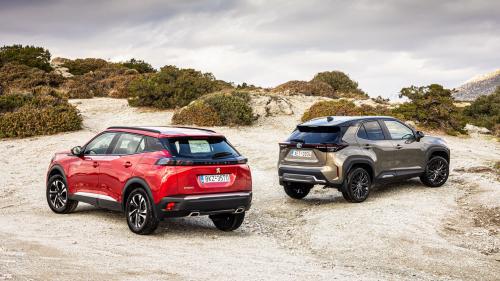 Δύο από αυτά τα μοντέλα είναι το δημοφιλές και καθιερωμένο Peugeot 2008, και το νέο και πολυαναμενόμενο Toyota Yaris Cross. To ιαπωνικό μοντέλο παρατάσει μια πιο SUV εικόνα που παραπέμπει ξεκάθαρα στο RAV4 και δεν θυμίζει σε τίποτα ανασηκωμένο Yaris. Από την άλλη, η Peugeot έχει ακολουθήσει τα τελευταία χρόνια πορεία ριζικής αλλαγής και τα μοντέλα της απέκτησαν ακαταμάχητη σχεδίαση που αρέσει σε πολλούς.