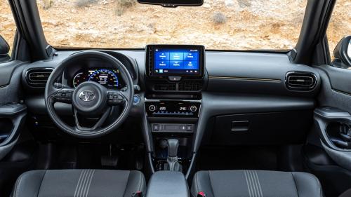 Η πρακτικότητα είναι καλή χάρη στις πολλές και ευρύχωρες θήκες για μικροαντικείμενα. Η θέση οδήγησης του νέου Yaris Cross είναι αρκετά καλή, με κάθισμα που στηρίζει σωστά το σώμα και δεν θα κουράσει σε μεγάλες διαδρομές. Επιπλέον, οι μεγάλοι καθρέφτες και το ψηλά τοποθετημένο κάθισμα εξασφαλίζουν πολύ καλή περιμετρική ορατότητα.